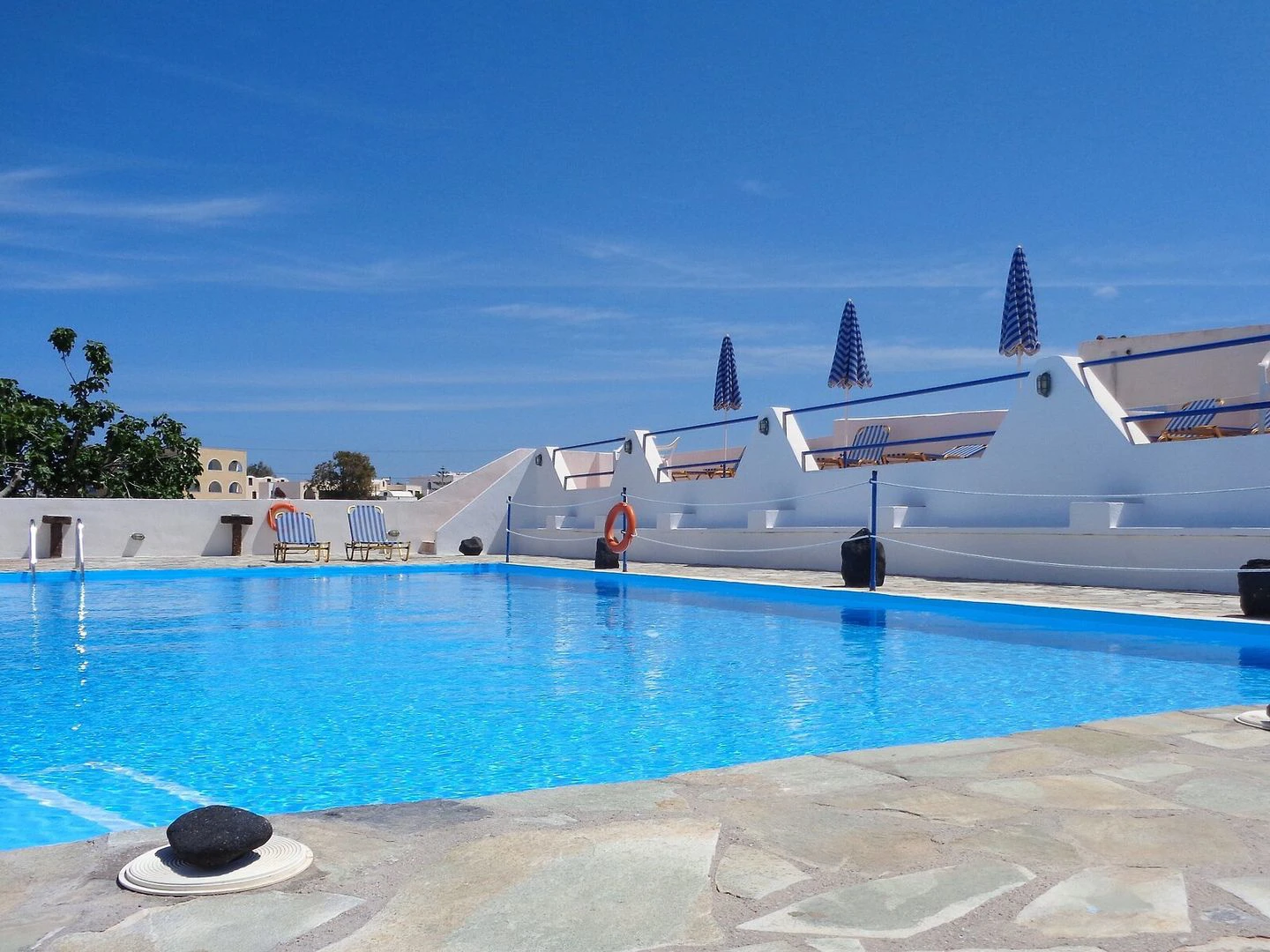 • Léto je na ostrovech úžasné. Teploty dosahují ke 30 oC, ale i v nejžhavějších měsících červenci a srpnu je příjemněji než na ostatních středomořskýh ostrovech. Slunečná obloha vydrží 10 – 12 hodin denně a večer davy turistů míří na malý útes Oia sledovat úchvatný západ slunce nad Egejským mořem. Srážek je celoročně málo, v tomto ročním období jsou téměř nulové.