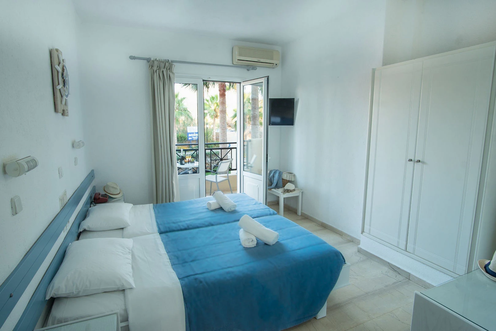 Pokoje mají klimatizaci a koupelnu. Balkón patří ke standardu ve většině pokojů. Mnoho pokojů má výhled na moře, který vytváří příjemnou atmosféru. Pokoje mají dvoulůžkovou postel nebo rozkládací pohovku. Pro děti jsou k dispozici dětské postýlky. Je tady sejf. K vybavení pokojů patří lednička a varná konvice/kávovar. Na pokoji je připojení k internetu, telefon, televize a WiFi (zdarma). Hosté najdou na pokoji domácí obuv. V koupelnách je sprchový kout. Je zde vysoušeč vlasů. V resortu jsou nekuřácké pokoje.