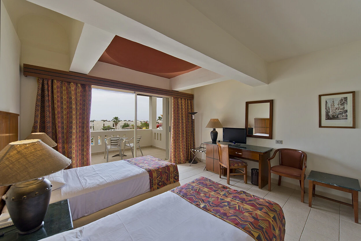 Hotel se skládá z komplexu bungalovů typicky v egypském resortovém stylu a hlavní budovy s restaurací, recepcí a dalšími pokoji. Součástí komplexu jsou velice hezké a udržované bazény. Bazénový i plážový servis uspokojivý. Pláž velice hezká, nebyl problém o lehátka. Přístup do vody je možný pouze z mola, není proto vhodné pro malé děti. Ideální pro šnorchlování. Výběr jídel a ovoce velice slušný. Jediným nedostatkem bylo nezahrnutí kávy do systému all-incl., káva byla možná pouze ráno k snídani a pak u vybraného baru ovšem jednalo se o překapávanou silně ředěnou kávu. Pláž se nenachází hned u hotelu, je však lehce dosažitelná chůzí nebo je možnost využítí shuttle-busu.
