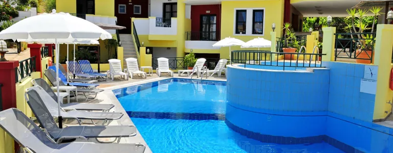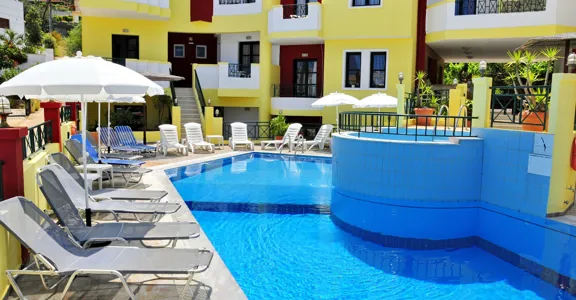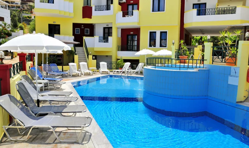 V pokojích je klimatizace, obývací část, kuchyň a koupelna. K standardnímu vybavení většiny pokojů patří balkón. Mnoho pokojů má výhled na moře, který vytváří příjemnou atmosféru. Pokoje jsou vybavené dvoulůžkovou postelí. Je možné rezervovat oddělené ložnice. Pro děti jsou k dispozici dětské postýlky. Je tady sejf. Hosté, kteří se chtějí stravovat sami, zde najdou kuchyňský kout s ledničkou, mini ledničkou, vařičem, varnou konvicí/kávovarem a troubou. Na pokoji je připojení k internetu, telefon, televize a WiFi (zdarma). Koupelny mají sprchový kout a vanu. Je zde vysoušeč vlasů. Rodiny s dětmi si mohou rezervovat speciální rodinné pokoje.