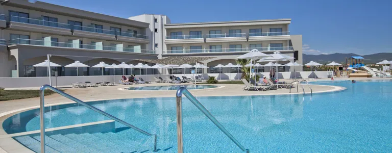 Hotel je z roku 2014. Objekt má 286 pokojů. Do všech poschodí lze vyjít po schodech nebo pohodlně vyjet výtahem. V objektu je úschovna zavazadel a bankomat. Ve společných prostorách se mohou hosté přes WiFi připojit k internetu (zdarma). Na rezervační přepážce vám rádi pomůžeme s výběrem a rezervací výletů Nachází se zde několik stravovacích zařízení, například restaurace, kavárna, bar a plážový bar. Je tady supermarket a další obchody. V areálu je hezká zahrada a hřiště. Je zde dětská herna. Ti, kteří přijeli vlastním autem, mohou parkovat bez poplatku na parkovišti. Dále je možné využít službu hlídání dětí, lékařskou službu, transfer-servis, pokojovou službu, prádelnu a kadeřnictví.