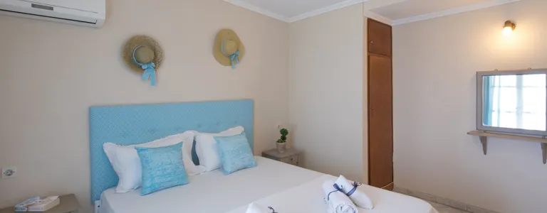 V pokojích je klimatizace a koupelna. K standardnímu zařízení většiny pokojů patří balkón. Mnoho pokojů má výhled na moře, který vytváří příjemnou atmosféru. Je možné rezervovat oddělené ložnice. Pro děti jsou k dispozici dětské postýlky. Kuchyňský kout je vybaven varnou konvicí/kávovarem. Na pokoji je připojení k internetu, telefon, televize a WiFi (zdarma). K vybavení koupelen patří sprchový kout. V objektu jsou pokoje pro rodiny a nekuřácké pokoje.