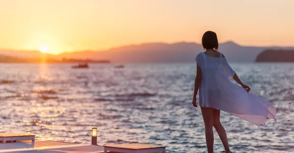 • Opravdové léto začíná červnem. V červenci a srpnu zastihnete teplotní maxima (až 30 oC), sluneční paprsky budou pálit 13 hodin denně, vlhkost je nízká, a proto jsou teploty snesitelnější. Záchranou před horkem je poměrně často foukající vítr meltemi. V největších vedrech Vám ale nepomůže, protože se sám ohřívá, a Vy se tak budete cítit jako při fénování teplým vzduchem. Moře se v červenci a srpnu ohřeje na 24 oC. Trvalejších srážek se v létě neobávejte.
