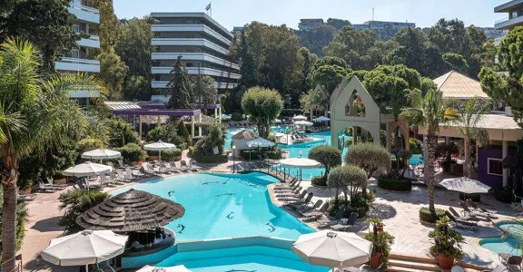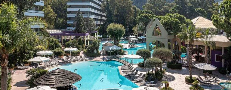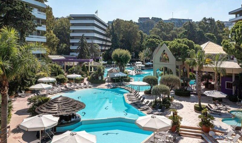 Resort je z roku 1971. Komplex má 281 pokojů. Jsou rozmístěny v jedné hlavní budově a v 2 vedlejších budovách. Po příjezdu jsou hosté uvítáni ve vstupní hale s recepcí. Do všech poschodí lze vyjít po schodech nebo pohodlně vyjet výtahem. Je zde směnárna. Ve společných prostorách se mohou hosté přes WiFi připojit k internetu (zdarma). V objektu se nachází restaurace, kavárna a plážový bar. Základní potřeby si mohou hosté koupit v supermarketu. V obchodě se suvenýry si mohou hosté koupit upomínkové předměty. Děti si mohou hrát na dětském hřišti. Je zde TV místnost. Ti, kteří přijeli vlastním autem, mohou parkovat na parkovišti. Prázdninový areál nabízí lékařskou službu, transfer-servis, pokojovou službu, budící službu a prádelnu.