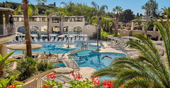 Prázdninová vesnice má 65 pokojů. V objektu je hotelový sejf a bankomat. Ve společných prostorách je možnost internetového připojení přes WiFi. Nachází se zde několik stravovacích zařízení, například restaurace, jídelna a bar. Je tady obchod se suvenýry a další obchody. V areálu je hezká zahrada a hřiště. Je zde dětská herna. Ti, kteří přijeli vlastním autem, mohou parkovat na parkovišti. Dále je možné využít službu hlídání dětí, překladatelské služby, pokojovou službu, prádelnu a kadeřnictví. Aktivní hosté, kteří se chtějí projet po okolí na kole, si mohou půjčit kolo (za poplatek).