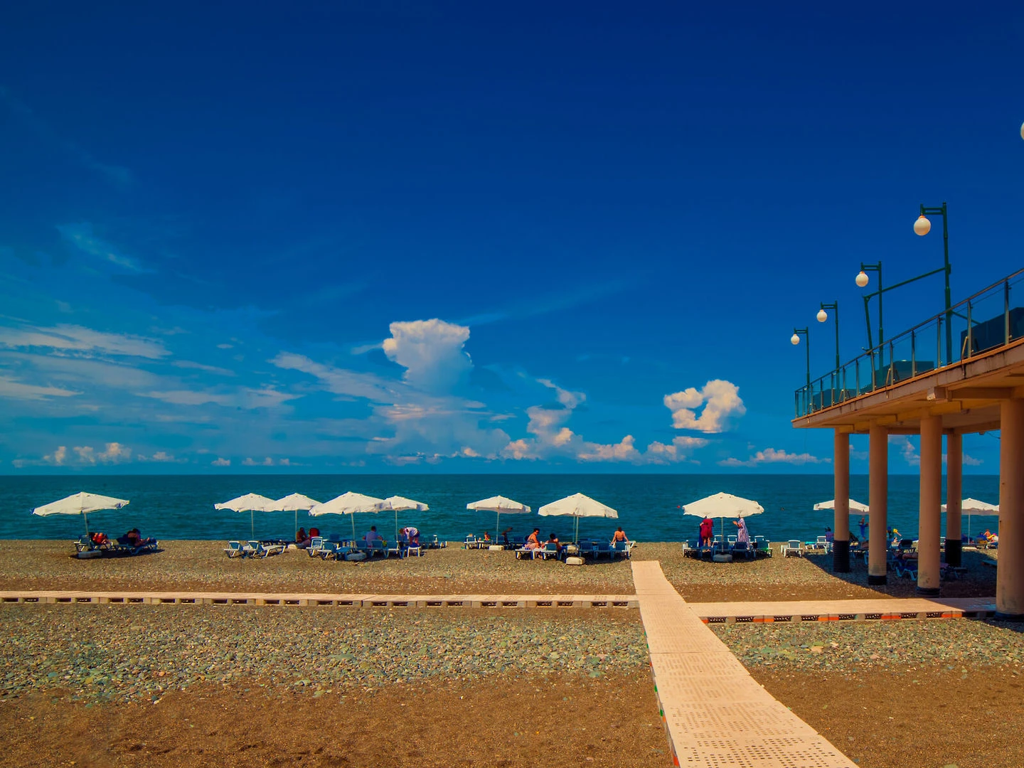 Pláž s lehátky