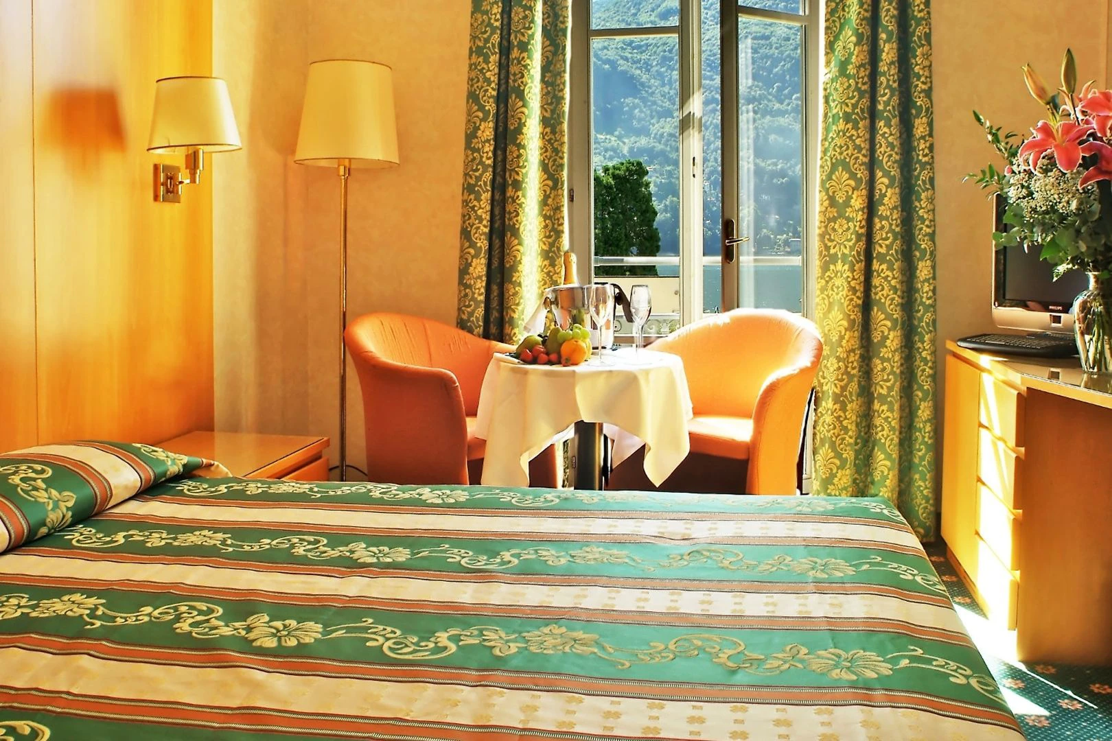 Pokoje jsou en suite se sprchou, vanou a vysoušečem vlasů. Hosté se mohou těšit na dobrý noční odpočinek na jejich manželskou postelí nebo manželskou postelí velikosti King. Další standardní funkce všech ubytovacích jednotek patří telefon s přímou volbou, LCD TV se satelitním příjmem, hifi, přístup k internetu, stejně jako trezor, minibar a příslušenství pro přípravu čaje a kávy. Je zde také žehlící soupravou a klimatizace, stejně jako samostatně regulovat vytápění. Každý pokoj je vybaven balkonem nebo terasou, která nabízí výhled na jezero, do zahrady, nebo Mount Bisbino.