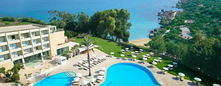 5 hviezdickový hotel za výbornu cenu, kvalitná strava, pestrý výber, tematické večere. Personal velmi ustretový hovoriaci anglicky,rusky aj slovensky - nebol ziadny problem., hotel luxusny, akurat nabytok v izbach mierne opotrebovaný Hotel je umiestneny nad zatokou Konnos bay- vedie k nemu chodnik s 200 schodmi / pre straších a rodiny s malými detmi to može byt problem/ ale kazdu hodinu chodi zdarma shuttle bus k plaži- ten sme však my nevyuzili . Celkovo velmi dobry dojem z celej dovolenky, hotel je umiestneny v narodnom parku, okolo viac menej len priroda, pokojné prostredie.