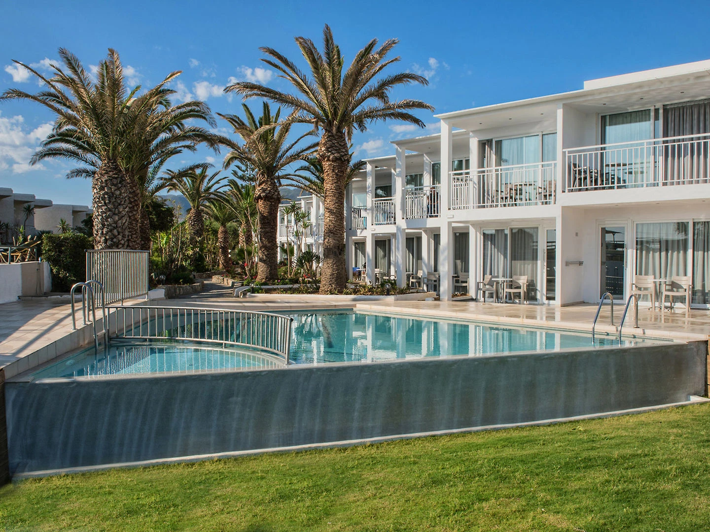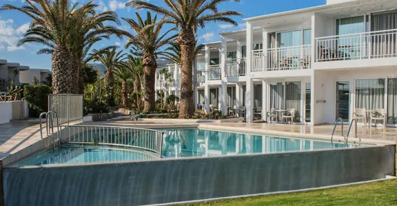 V pokojích je klimatizace a koupelna. Ke standardu většiny pokojů patří balkón, na kterém mohou hosté odpočívat. Z většiny pokojů je aspoň částečný výhled na moře. Pokoje mají dvoulůžkovou postel nebo rozkládací pohovku. Je možné rezervovat oddělené ložnice. Pro děti jsou k dispozici dětské postýlky. Je tady sejf. Hosté mohou použít ledničku a varnou konvici/kávovar. Na pokoji je připojení k internetu, telefon, televize a WiFi (zdarma). V koupelnách je sprchový kout. K dispozici mají hosté také vysoušeč vlasů a kosmetické zrcátko. V objektu jsou pokoje pro rodiny a nekuřácké pokoje.