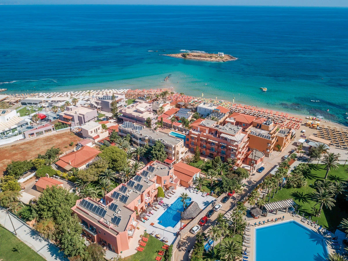 Hosté mají celkově k dispozici 88 pokojů. Hosté mají k dispozici vstupní halu s recepcí. Je zde výtah, kterým lze vyjet do většiny poschodí. Je zde hotelový sejf a směnárna. Ve společných prostorách se mohou hosté přes WiFi připojit k internetu. V apartmánovém hotelu se nachází restaurace, jídelna a bar. Je tady supermarket a obchod se suvenýry a další obchody. V areálu je hezká zahrada a hřiště. Je zde TV místnost. Ti, kteří přijeli vlastním autem, mohou parkovat za poplatek na parkovišti. Hotel nabízí službu hlídání dětí, lékařskou službu, pokojovou službu, budící službu, prádelnu a kadeřnictví. Aktivní hosté, kteří se chtějí projet po okolí na kole, si mohou půjčit kolo (za poplatek).