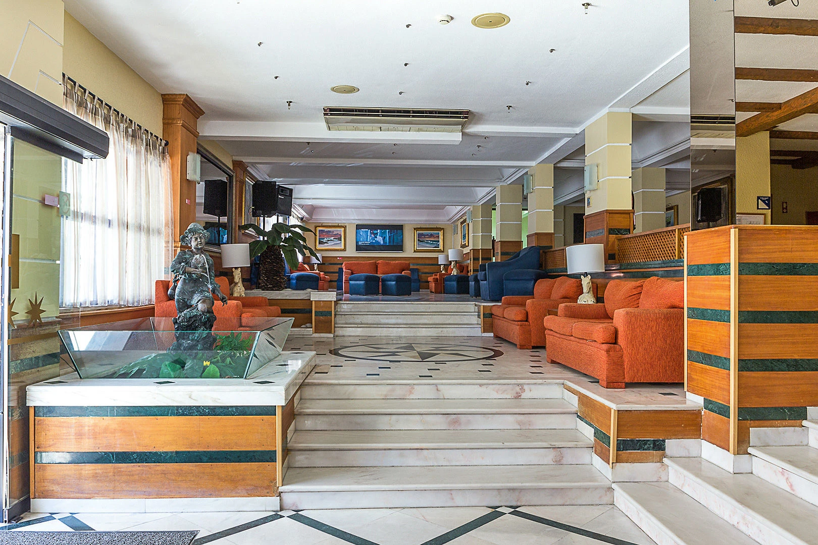 Hotel je z roku 1974. Objekt má 108 pokojů. Po příjezdu jsou hosté uvítáni ve vstupní hale s recepcí. Je zde výtah, kterým lze vyjet do většiny poschodí. Je zde hotelový sejf. Ve společných prostorách se mohou hosté přes WiFi připojit k internetu. Na rezervační přepážce vám rádi pomůžeme s výběrem a rezervací výletů Nachází se zde restaurace, jídelna, kavárna a bar. V areálu je hezká zahrada a hřiště. Je zde TV místnost. Hosté mohou zaparkovat v garáži nebo na parkovišti. Dále je možné využít pokojovou službu a prádelnu. Aktivní hosté, kteří se chtějí projet po okolí na kole, si mohou půjčit kolo.