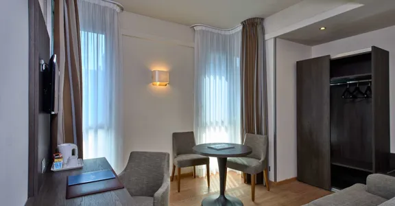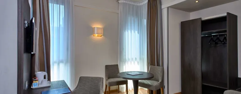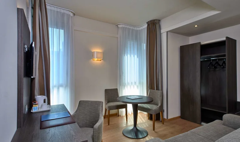 Hotel pochází z roku 1972. Objekt hostům nabízí celkem 76 pokojů. Po příjezdu jsou hosté uvítáni ve vstupní hale s recepcí. Do většiny poschodí lze dojet výtahem. V objektu je šatna, úschovna zavazadel, hotelový sejf a směnárna. Ve společných prostorách je možnost internetového připojení přes WiFi (za poplatek). V hotelu se nachází restaurace, jídelna, snídaňový salónek a bar. Nachází se zde také novinový stánek a TV místnost. Hosté mohou zaparkovat v garáži (za poplatek) nebo na parkovišti. Jízdní kola je možné za poplatek nechat v úschovně kol. Objekt nabízí vícejazyčný personál, pokojovou službu a prádelnu. Aktivní hosté, kteří se chtějí projet po okolí na kole, si mohou půjčit kolo.