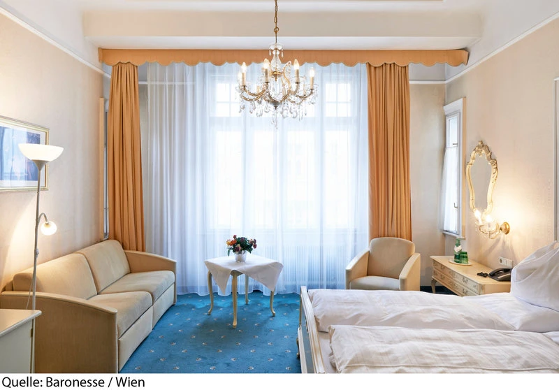 Hotel nabízí hostům celkem 39 pokojů. Po příjezdu jsou hosté uvítáni ve vstupní hale s recepcí. Do jednotlivých pater lze vyjet výtahem. Je zde úschovna zavazadel, hotelový sejf, bar, knihovna a pokojová služba. Přes WiFi se mohou hosté ve společných prostorách připojit k internetu. Na rezervační přepážce vám rádi pomůžeme s výběrem a rezervací výletů Hosté mohou zaparkovat v garáži (za poplatek) nebo na parkovišti.