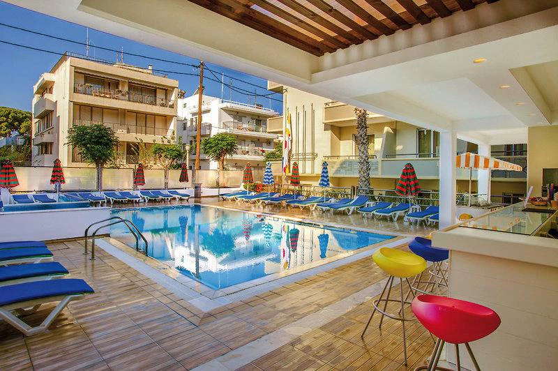 Komplex pochází z roku 1988. Klimatizovaný hotel má 99 pokojů. Jsou rozmístěny v jedné hlavní budově a v 3 vedlejších budovách. Po příjezdu do komplexu jsou hosté uvítáni ve vstupní hale s recepcí, která je otevřena 24 hodin. Check in/check out je možný 24 hodin. Do všech poschodí lze vyjít po schodech nebo pohodlně vyjet výtahem. V objektu je hotelový sejf a směnárna. Přes WiFi se mohou hosté ve společných prostorách připojit k internetu. V komplexu se nachází restaurace, jídelna, snídaňový salónek, kavárna, bar a hospoda. Základní potřeby si mohou hosté koupit v supermarketu. V areálu je hezká zahrada a hřiště. Nachází se zde také TV místnost a dětská herna. Jízdní kola je možné nechat v úschovně kol. Hotel nabízí lékařskou službu, pokojovou službu a prádelnu. Aktivní hosté, kteří se chtějí projet po okolí na kole, si mohou půjčit kolo.