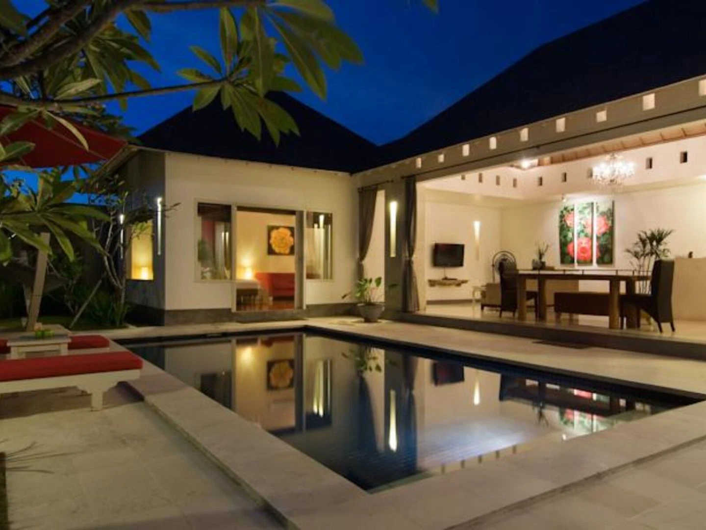 Obývací pokoj nabízí semi-venkovní prostory s gurmánskou kuchyňským koutem a jídelnou. Dávejte si pozor na vlastní zahradou a bazénem, nabízí možnost vyzkoušet zdravé atributy balijské venkovní bydlení. Klimatizované pokoje nabízejí prostor k relaxaci a odpočinku. Každý pokoj je vybaven kabelovou LCD TV, mezinárodní telefon s přímou volbou, bezpečnostní schránkou a koupelnou. Koupelny jsou vybaveny oddělenou vanou a sprchy s dvojitým toaletním stolkem, stejně jako rozsáhlé lázeňské koupele menu a luxusní hostů vybavení. Další in-pokojové vybavení patří připojení k internetu, minibar a king-size postelí.