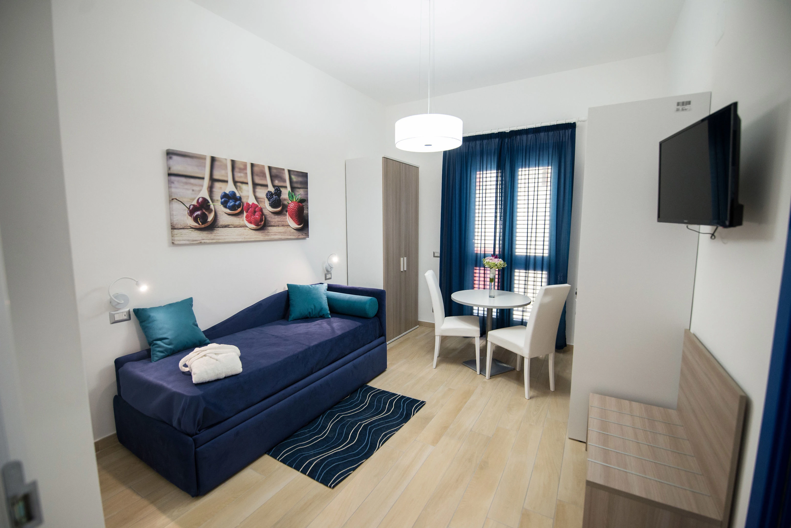 V pokojích je klimatizace, ústřední topení a koupelna. Většina pokojů má balkón s krásným výhledem. Pokoje mají dvoulůžkovou postel nebo rozkládací pohovku. Pro děti jsou k dispozici dětské postýlky. Je tady sejf. Na pokoji je připojení k internetu, telefon, televize a WiFi (zdarma). Je možné rezervovat bezbariérové pokoje. V koupelnách je sprchový kout a bidet. Je zde vysoušeč vlasů. Je možné rezervovat koupelnu s bezbariérovým přístupem. V komplexu jsou pokoje pro rodiny a nekuřácké pokoje.