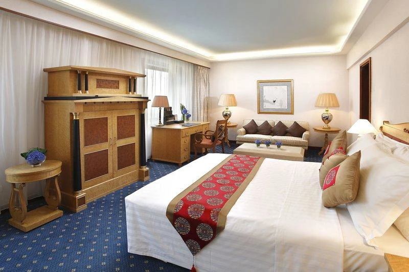 Hotel byl otevřen v květnu 1992 a zahrnuje 526 pokojů. Plně vzduch-stabilizují, je vybaven lobby s 24-hodinová recepce a check-out servis, hotelový trezor, směnárna, šatna a výtah přístup. K dispozici je on-site kavárna, bar a řada čínské, japonské a západní restaurací. Další vybavení patří Novinový stánek, kadeřnictví, diskotéka a TV místnost. Různé zasedací místnosti jsou k dispozici a hosté mohou využít širokopásmové připojení k internetu. Místnost a prádelna jsou služby poskytovány, a hosté, kteří přijedou autem, mohou zanechat svá vozidla na parkovišti nebo v garáži.