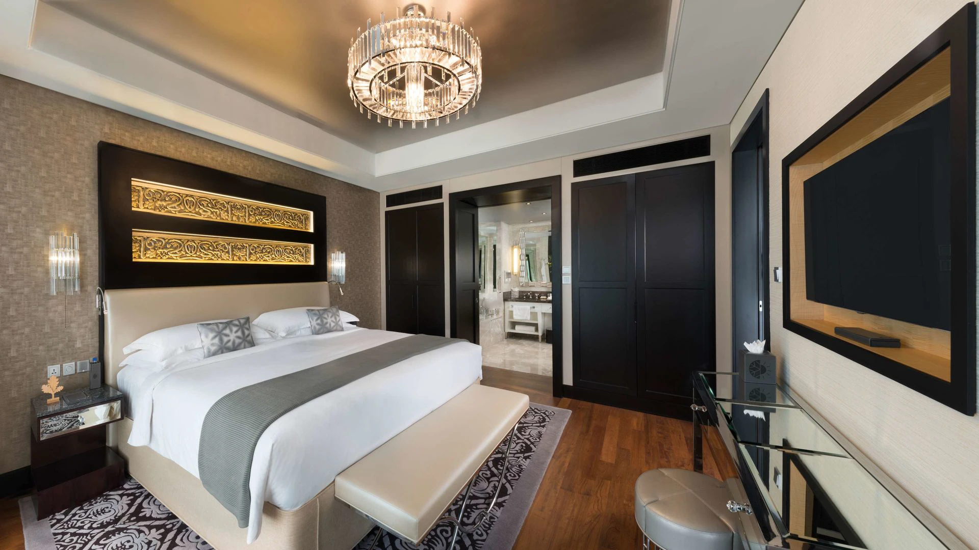 Hotelové pokoje a apartmány jsou zařízené v moderním designu a elegantně, s průměrnou velikostí místnosti o 61 m². Každý přichází s koupelnou s fénem, stejně jako telefon s přímou volbou, satelitní / kabelová TV, přístup k internetu, minibarem, příslušenstvím pro přípravu čaje a kávy, individuálně nastavitelnou klimatizací a trezorem.