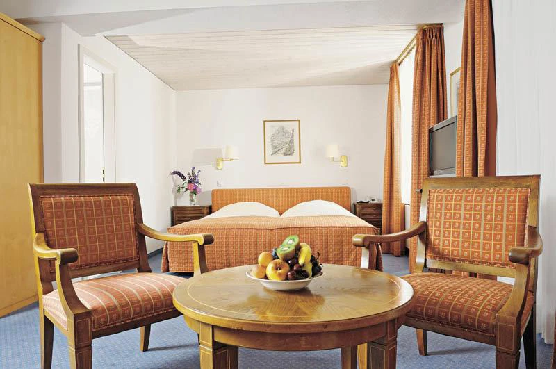 Postaven v roce 1899 a zrekonstruován v roce 2001, tento hotel se skládá celkem z 42 pokojů rozložena na 5 podlažích, z toho 11 apartmá. Hosté jsou vítáni v hale s recepcí, výtahy, Novinový stánek, obchody, Boutique Rustica obchod se suvenýry, kadeřnictví a salon. Challi Bar, snack bar, hernu a à la carte restaurace nabízející Vánoce a silvestrovské menu, jsou všechny zve možnosti jsou k dispozici pro hosty. Ti, kteří přijedou autem, mohou využít hotelové parkoviště nebo využít veřejné parkoviště cca 100 m od hotelu.