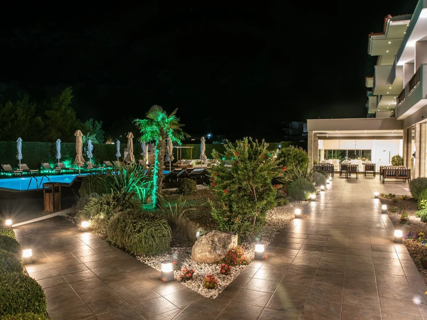 Je zde výtah, kterým lze vyjet do většiny poschodí. Je zde hotelový sejf, restaurace, bar, TV místnost, pokojová služba, budící služba a prádelna. Přes WiFi se mohou hosté ve společných prostorách připojit k internetu. V areálu je hezká zahrada a hřiště. Ti, kteří přijeli vlastním autem, mohou parkovat na parkovišti.