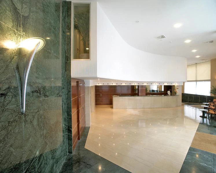 Budova má celkem 7 pater obsluhované výtahem a má 100 dvoulůžkových pokojů. K vybavení patří 24-hodinová recepce, trezory, směnárna v recepci, kavárna, TV místnost, klimatizované restaurace, místnost a prádelna služby, parkoviště, garáže a konferenční místnost. Konferenční sál má přístup k internetu, stejně jako bezdrátové internetové připojení.