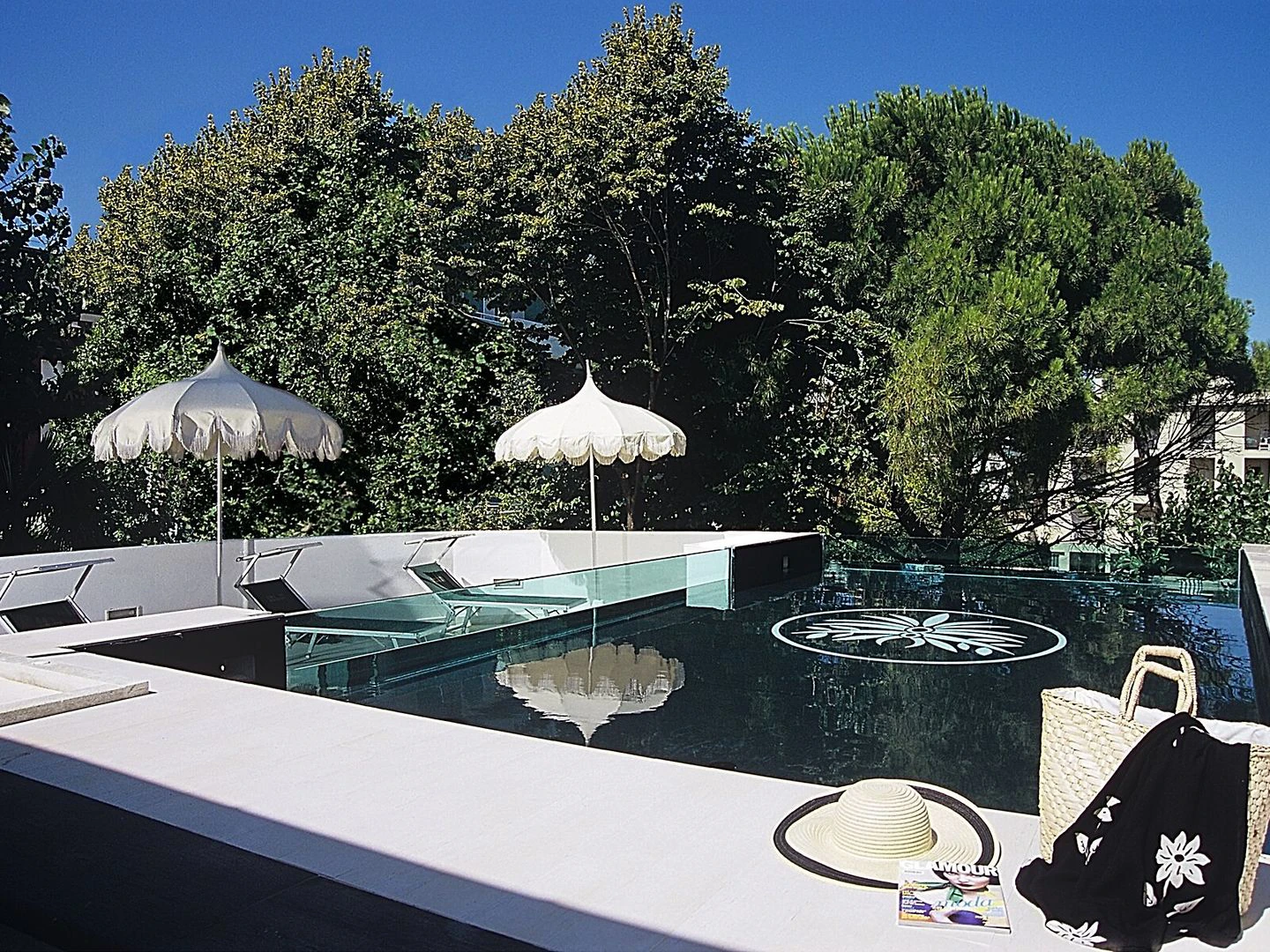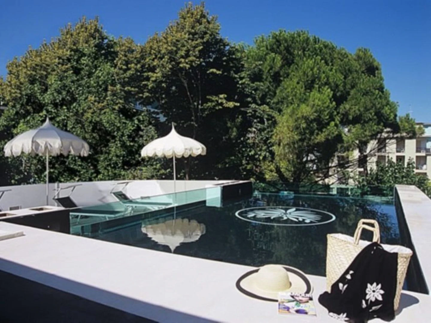 Hosté si mohou zacvičit v posilovně nebo relaxovat u venkovního bazénu.