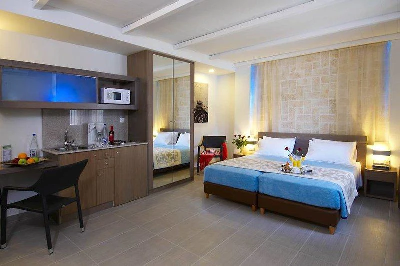 Apartmánový hotel pochází z roku 2000. Objekt hostům nabízí celkem 36 pokojů. Ty se nacházejí buď v 2patrové hlavní budově nebo v jedné z 5 vedlejších budov. Vedlejší budovy mají maximálně 3 poschodí. Hosté mají k dispozici vstupní halu s recepcí. Do všech poschodí lze vyjít po schodech nebo pohodlně vyjet výtahem. V hotelu je úschovna zavazadel, hotelový sejf a směnárna. Ve společných prostorách se mohou hosté přes WiFi připojit k internetu (za poplatek). Na rezervační přepážce vám rádi pomůžeme s výběrem a rezervací výletů Nachází se zde několik stravovacích zařízení, například restaurace, jídelna, snídaňový salónek, kavárna a bar. Je tady supermarket a další obchody. V areálu je hezká zahrada a hřiště. Nachází se zde také novinový stánek, TV místnost, dětská herna a knihovna. Hosté mohou zaparkovat v garáži nebo na parkovišti (zdarma). Jízdní kola je možné nechat v úschovně kol. Dále je možné využít vícejazyčný personál, službu hlídání dětí, autopůjčovnu, lékařskou službu, transfer-servis, pokojovou službu, budící službu, prádelnu a kadeřnictví. Hosté mohou využít zdarma shuttleservis. Aktivní hosté, kteří se chtějí projet po okolí na kole, si mohou půjčit kolo. Při řešení obchodních záležitostí mohou hosté využívat služeb business centra, které nabízí fax.