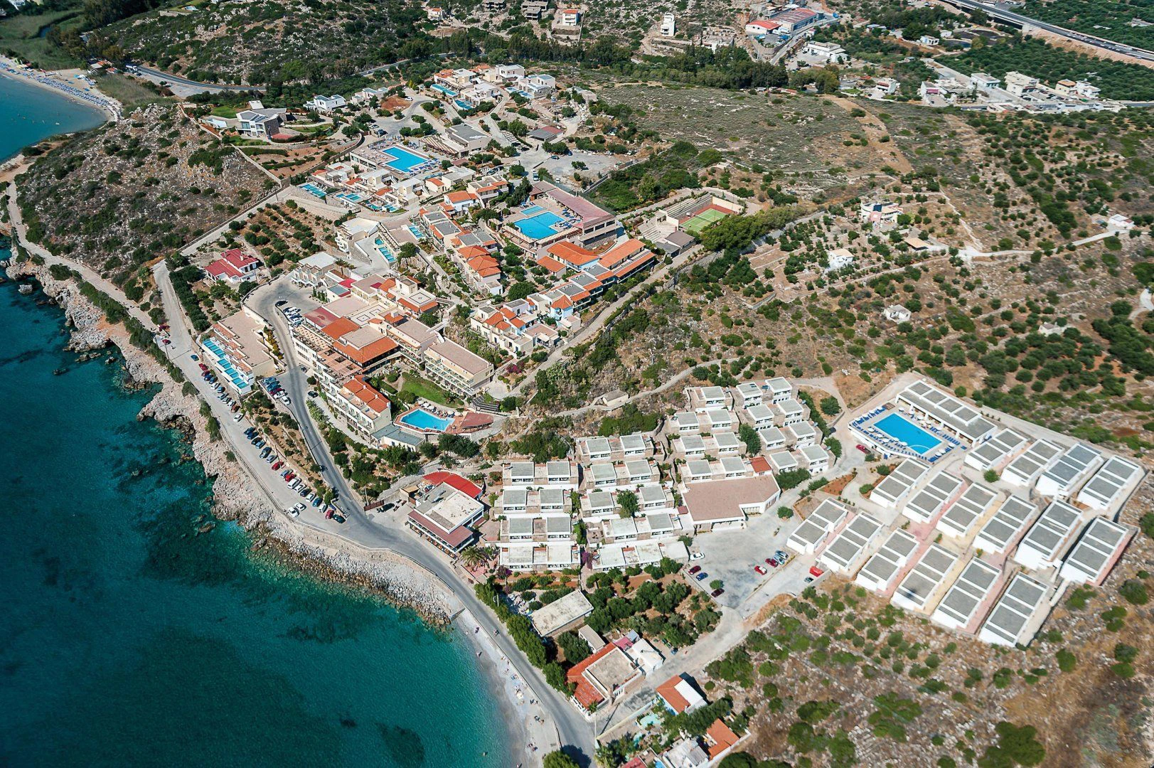 V pokojích je klimatizace, ústřední topení a koupelna. Většina pokojů má balkón s krásným výhledem. Většina pokojů má výhled na moře. Pokoje mají dvoulůžkovou postel a rozkládací pohovku. Je možné rezervovat oddělené ložnice. K dispozici jsou i postýlky pro kojence nebo přistýlky. Také je zde sejf a minibar. V kuchyňském koutě je lednička a varná konvice/kávovar. K základnímu vybavení patří připojení k internetu, telefon, televize a WiFi (zdarma). Pro hosty je na pokoji připravena domácí obuv. V koupelnách je sprchový kout, vana a vířivá vana. K dispozici mají hosté také vysoušeč vlasů a župan. V komplexu jsou pokoje pro rodiny a nekuřácké pokoje.