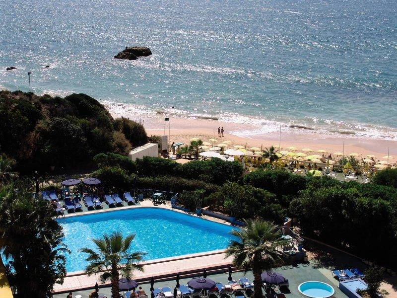 postarší hotel přímo na pobřeží oceánu v portugal ské Albufeiře. Tento hotel má 3 i 4 hvězdičky, studia i apartmány i pokoje v hlavní budově. My jsme si objednali nejlevnější variantu tudíž studio 3 hvězdičky. Měli jsme štěstí na ubytování, protože ne ze všech studií a apartmánů je vidět na moře - z některých jen na sousední budovu. My měli studio, které se skládalo s kuchynky, obýváku, ložnice a balkonu, až nahoře takže jsme krásně přes střechy i palmy viděli na moře, i na bar. Měli jsme all inclusiv, horší služby než třeba ve španělsku nebo řecku. Připadalo nám, že lidi co mají all inclusiv již nejsou pro personál zajímaví a zajímají je spíše hosté co platí. Například bar pro lidi čerpající all inclusiv byl po schodech dolu uvnitř budovy a lidé co si platí nápoje tak měli bar k dispozici i venku. Všechny nápoje značky ARO -lili z dvoulitrových pet lahví, točené pivo dle manžela ušlo. Jídla nebyl takový výběr jako třeba ve španělsku ale dalo se vybrat a bylo docela dobré. Bazén, který k hotelu patřil byl zamčen za plotem a otvírali ho přesně v 9 hodin ráno, od 10 h mohli lidé čerpat all inclusiv -často došly normální kelímky, tak pivo točili do jednodecových -měla jsem pocit že to bylo úmysl, ale kdoví? přesně v 17 hodin zavřeli u bazénu bar, ztichla hudba ale ještě nás tam nechali do sedmi ležet na lehátkách. V sedm nekompromisně bazénovou zahradu zamkli. Po pár schodech od bazénové zahrady se přišlo na krásnou písčitou přírodní pláž k moři, voda dost studená -však je to oceán, ale dalo se zvyknout i na tu studenou vodu. Lidé korzují po pláži a sbírají krásně veliké mušle. Vyhovovalo nám, že večeře začínaly poměrně brzy v 18,30, pak jsme mohli jít pěšky asi tak 20 minut do města Albufeira, kde to opravdu žilo. Buď po pláži nebo po silnici z kopce do kopce. Ještě pár slov k osídlení hotelu bylo tam nejvíce poláků, kteří tam měli i svou animátorku a nápisy v polštině, dále hodně angličanů a francouzů a asi také místní nebo španělé. Je to hotel střední kategorie, který by potřeboval nějakou finanční injekci a trochu více péče. Každý večer byly animační programy, kterých jsme se nezúčastňovali. U bazénu také animátoři -většinou chlapci -u bazénu aqua gymnastika, různá cvičení, vodní polo atd. Cestovali jsme přes německou its z drážďan, let načas přestupem na mallorce. V hotelu jsme byli kolem jedné po obědě, takže jsme dostali pásky a hned jsme šli na oběd a mohli čerpat all inclusiv, klíče od ubytování jsme dostali až v půl třetí. Zpátky jsme odjížděli něco kolem půl druhé a přesně ve 12 při check out nám pásky ustříhli. Cesta zpět opět přes mallorku do drážďan. Trochu problém se zavazadly, které nepřiletěly z portugalska, ale třetí den nám je pracovník drážďanského letiště přivezl až domů. Takže vše dobře dopadlo. Ještě bych na závěr dodala, že na to jak je portugalsko všeobecně drahá destinace tak ty služby a výběr a kvalita jídla a pití bych si představovala na trochu jiné úrovni třeba s porovnání se španělskem, ale byla to hezká dovolená a rádi na ní budeme vzpomínat!!!!