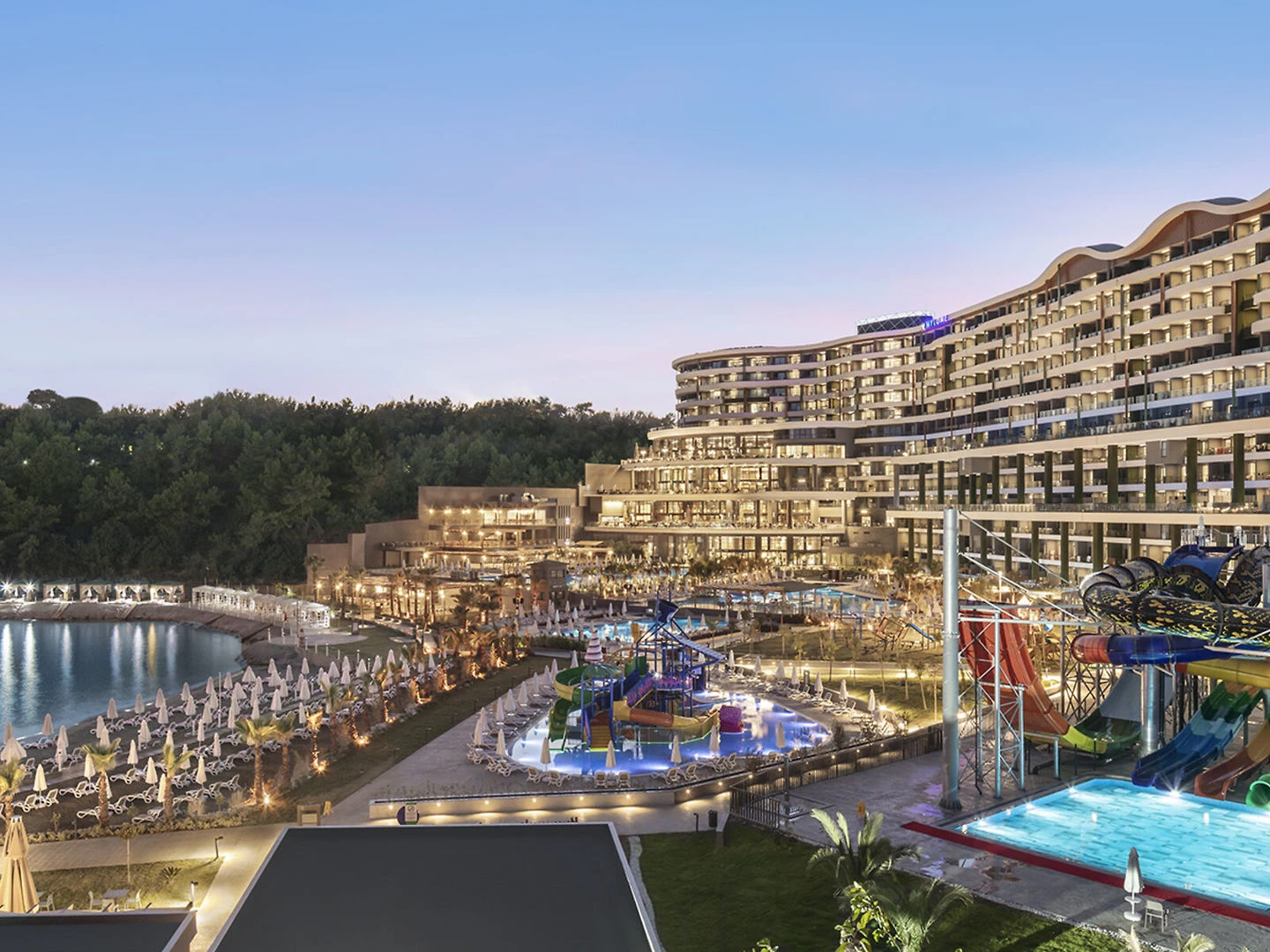 Moderní resort pochází z roku (2020). Prázdninový areál hostům nabízí celkem 456 pokojů. Po příjezdu jsou hosté uvítáni ve vstupní hale s recepcí. Je zde výtah, kterým lze vyjet do většiny poschodí. V objektu je úschovna zavazadel, hotelový sejf a bankomat. Přes WiFi (zdarma) se mohou hosté ve společných prostorách připojit k internetu. Na rezervační přepážce vám rádi pomůžeme s výběrem a rezervací výletů V komplexu se nachází restaurace, kavárna, bar, hospoda a plážový bar. Je tady supermarket a další obchody. V areálu je hezká zahrada a hřiště. Je zde dětská herna. Hosté mohou zaparkovat v garáži (za poplatek) nebo na parkovišti (zdarma). Hosté mohou využívat úschovnu kol. Resort nabízí vícejazyčný personál, 24 hodinovou bezpečnostní službu, službu hlídání dětí, lékařskou službu, transfer-servis, pokojovou službu, prádelnu a kadeřnictví. Aktivní hosté, kteří se chtějí projet po okolí na kole, si mohou půjčit kolo. Při vyřizování obchodních záležitostí mohou hosté využít fax. Přednášky, prezentace nebo jednání se mohou konat v jednom z 5 konferenčních sálů.