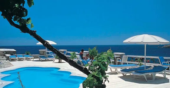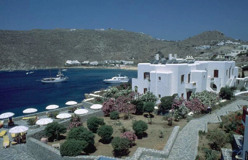 Tento malý, soukromý komplex byl postaven v typickém kykládském architektonickém stylu, namaloval v lesklé bílé barvy. Moderní butikový poskytuje luxusní pocit během celého hotelu. Beach Hotel byl rekonstruován v roce 2009 a má 25 pokojů pro hosty. Hosté jsou vítáni v lobby s 24-hodinová recepce a 24-hodinová check-out servis. Zařízení na klimatizovaný zařízení patří hotelový trezor, Novinový stánek a TV místnost. K dispozici je kavárna a bar v areálu. Hosté si mohou pochutnat na snídani v jídelně a mohou využít hotelové pokoje a prádelna služeb. Hosté se mohou ubytovat v kontaktu přes internet v internetovém koutku. Ti, kteří přijedou autem, mohou parkovat svá vozidla na hotelovém parkovišti.