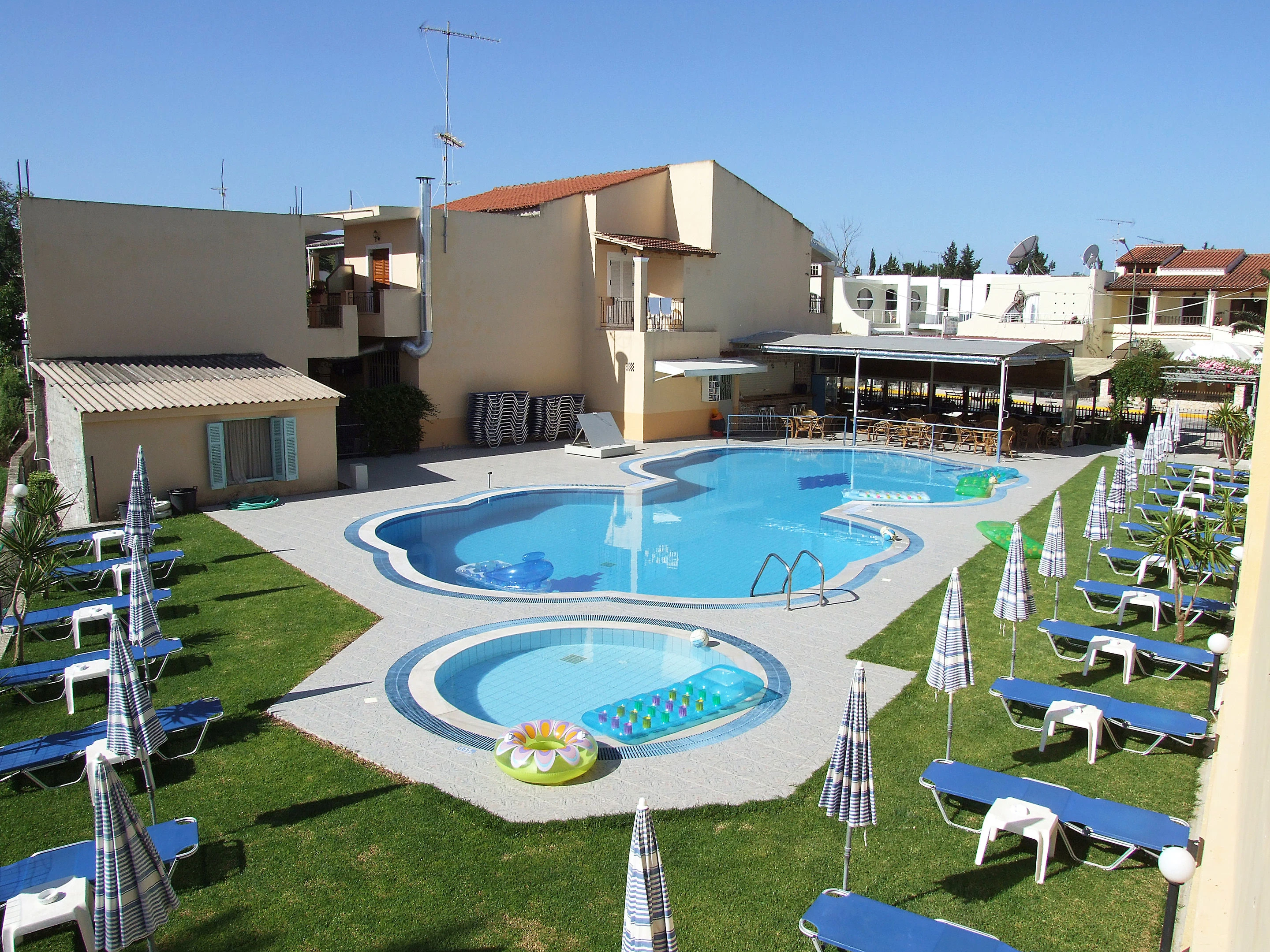 • Řecká léta jsou typická neúnavným sluncem po dobu až 12 hodin denně, minimálními srážkami a oproti okolním ostrovům mírnějšími teplotami (těsně nad 30 oC, zřídka vystoupí ke 38 oC). Nejpříjemnější je červen. V červenci a srpnu vane každoročně až 45 dní vítr meltemi, suchý severní vítr, který ale na Korfu nabírá na síle. Může dosahovat až síly bouře a například plavba na lodi je při něm nemožná.
