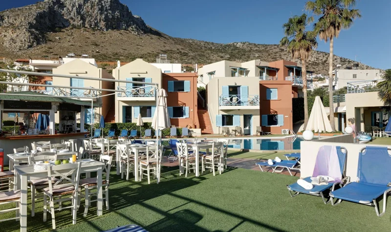 Prázdninová vesnice má 47 pokojů. Hosté mají k dispozici vstupní halu s recepcí. V objektu je úschovna zavazadel a hotelový sejf. Ve společných prostorách se mohou hosté přes WiFi připojit k internetu. Na rezervační přepážce vám rádi pomůžeme s výběrem a rezervací výletů Nachází se zde několik stravovacích zařízení, například restaurace, kavárna a bar. V areálu je hezká zahrada a hřiště. Nachází se zde také TV místnost a knihovna. Ti, kteří přijeli vlastním autem, mohou parkovat na parkovišti. K nabídce patří i autopůjčovna. Aktivní hosté, kteří se chtějí projet po okolí na kole, si mohou půjčit kolo.