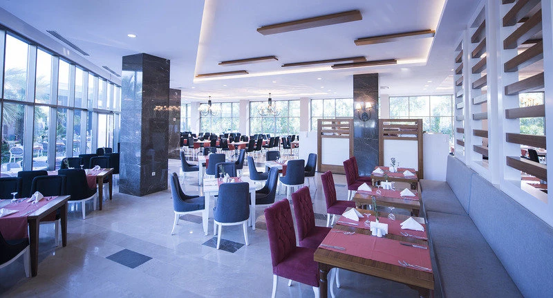 Hosté mají k dispozici vstupní halu s recepcí. Do jednotivých poschodí je možné pohodlně vyjet výtahem. V hotelu je úschovna zavazadel a hotelový sejf. Ve společných prostorách se mohou hosté přes WiFi připojit k internetu. Na rezervační přepážce vám rádi pomůžeme s výběrem a rezervací výletů Objekt má celou řadu zařízení pro handicapované. Nachází se zde několik stravovacích zařízení, například restaurace, kavárna, bar a plážový bar. Je tady supermarket a obchod se suvenýry a další obchody. V areálu je hezká zahrada a hřiště. Nachází se zde také TV místnost, dětská herna a knihovna. Ti, kteří přijeli vlastním autem, mohou parkovat bez poplatku na parkovišti. Dále je možné využít vícejazyčný personál, 24 hodinovou bezpečnostní službu, službu hlídání dětí, autopůjčovnu, lékařskou službu, transfer-servis, pokojovou službu, budící službu, prádelnu a kadeřnictví. Hosté mohou využít za poplatek shuttleservis. Aktivní hosté, kteří se chtějí projet po okolí na kole, si mohou půjčit kolo (za poplatek). Při řešení obchodních záležitostí mohou hosté využívat služeb business centra, které nabízí fax.