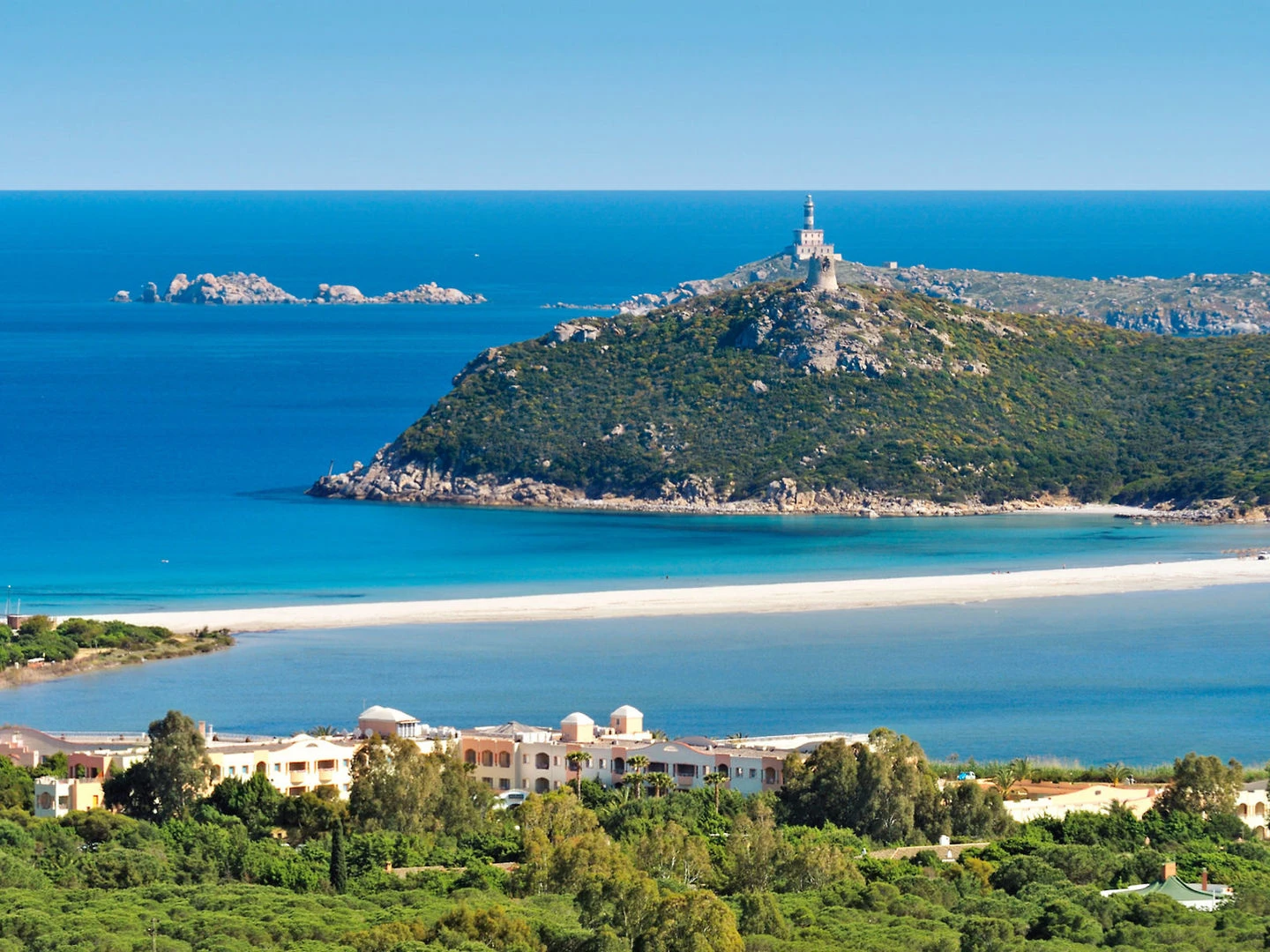 Tento atraktivní hotel se nachází přímo u pláže s výhledem na krásné pobřeží Sardinie. Tyrkysově modré vody, teplý vítr, místní vegetace a blízkost přírodního solného jezera, kde plameňáci tráví zimy, všechny odlišit tento hotel. Drtivá borovice obklopuje hotel a nachází se jen 2 km od městečka Villasimius, které je snadno dosažitelné pomocí shuttle bus (dodatečné poplatky se vztahují). Letiště je asi 55 km daleko.
