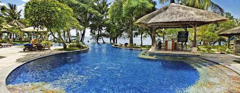 Tento hotel se skládá z 40 bungalovů navrženy v typickém stylu Bali. Hosté jsou zváni do foyer s 24-hodinová recepce, trezory, směnárna pult a šatna. Kulinářské možnosti zahrnují bar, restaurace pod širým nebem, která nabízí balijské a mezinárodní kuchyně, stejně jako vynikající rybí restaurace. Kromě toho hotel nabízí svým hostům restauraci s snové výhledem na moře. Kromě toho existuje celá řada obchodů, malý supermarket a půjčovna kol dodatečně nabízených v hotelu. Konečně, tam je prádelna a zdravotní služby zaokrouhlovat hotelu nabídky.