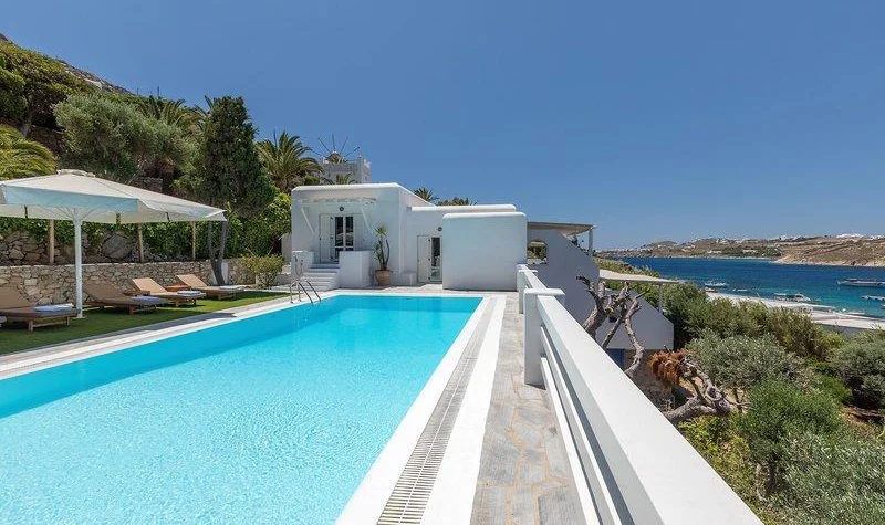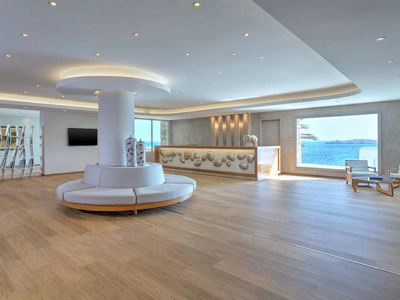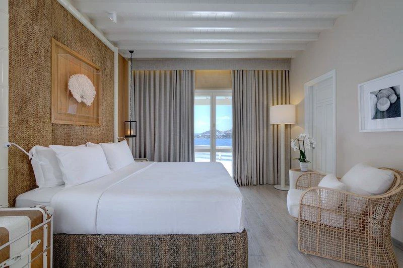 Díky tradiční bílé architektury Kykladských ostrovů a bohatství zařízení, hotel zaručuje perfektní pobyt na Mykonos. Hotel se skládá z celkem 90 pokojů. K vybavení hotelu patří hotelový trezor, výtahy, kavárna, 4 bary, noční klub, 3 restaurace, 2 konferenční místnosti a pokojovou službu.