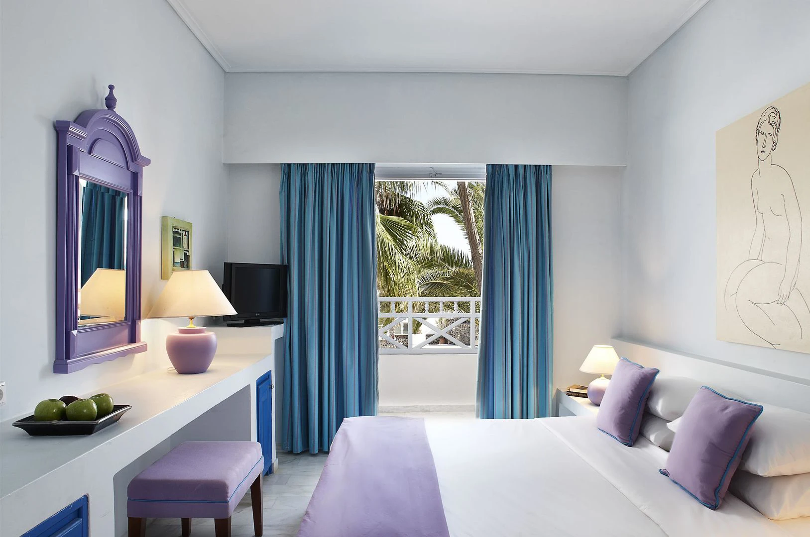 Typicky kykladském stylu pokoje jsou vybaveny veškeré potřebné pohodlí pro letní dovolenou. Každý pokoj je vybaven koupelnou se sprchou a fénem, telefon s přímou volbou, satelitní / kabelová TV, rádio, minibar, klimatizace a pronájem bezpečné.