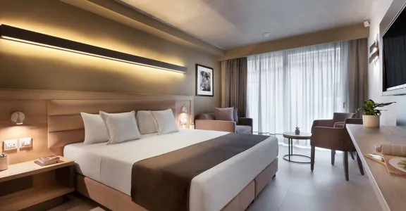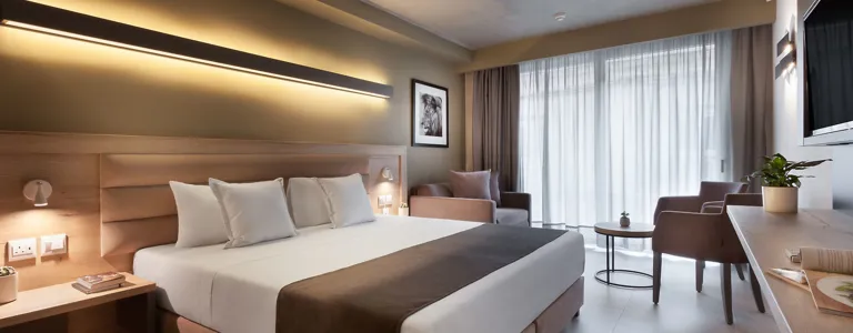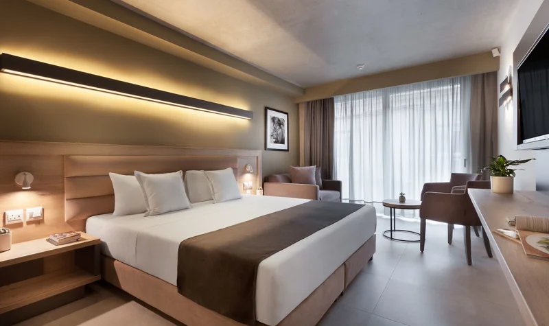 V pokojích je klimatizace, ústřední topení a koupelna. Většina pokojů má balkón s krásným výhledem. Mnoho pokojů má výhled na moře, který vytváří příjemnou atmosféru. Pro děti jsou k dispozici dětské postýlky. Také je zde sejf a pracovní stůl. K dispozici je také lednička a mini lednička. Navíc je zde sada na žehlení a žehlič kalhot. Zařízení pokoje doplňuje připojení k internetu, telefon, televize a WiFi (zdarma). Komfortně vybavené koupelny mají sprchový kout. Je zde vysoušeč vlasů. Je možné rezervovat koupelnu s bezbariérovým přístupem. V objektu jsou pokoje pro rodiny a nekuřácké pokoje.