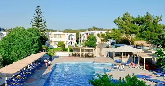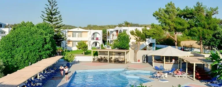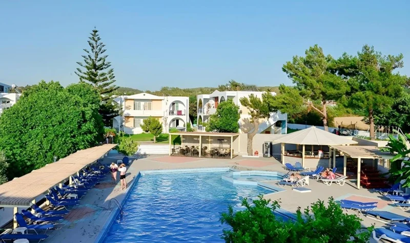 Svěží zelené zahrady obklopují 2 a 3 patře budovy. Komfortní pokoje nabízejí dokonalý výhled na Egejské moře. Tento hotel by byl vhodný zejména pro páry a rodiny hledající klidné lokalitě. Je ideální pro odpočinkovou dovolenou, nebo jako základna k prozkoumání krásný ostrov. Hotel lobby prostor nabízí hostům 24-hodinová recepce a bezpečné. Dodatečné vybavení patří bar, TV místnost a restaurace. K dispozici je dětské hřiště pro mladší hosty.