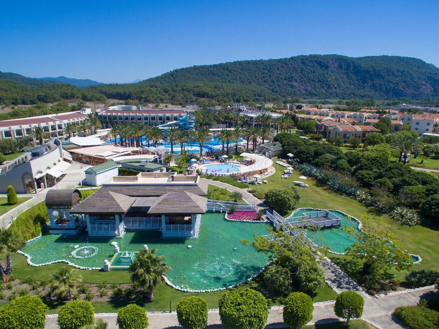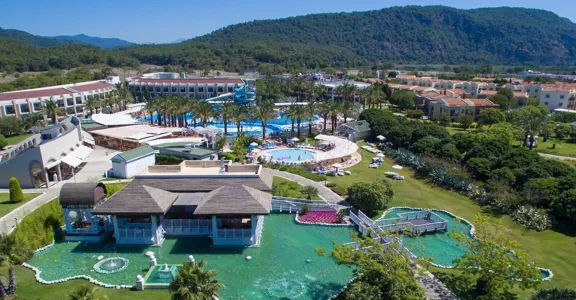 Resort je z roku 2005. Objekt má 500 pokojů. Je zde výtah, kterým lze vyjet do většiny poschodí. V komplexu je šatna, úschovna zavazadel, hotelový sejf, směnárna a bankomat. Ve společných prostorách se mohou hosté přes WiFi připojit k internetu. Na rezervační přepážce vám rádi pomůžeme s výběrem a rezervací výletů Prázdninový areál má celou řadu zařízení pro handicapované. Nachází se zde několik stravovacích zařízení, například restaurace, jídelna, kavárna a bar. Je tady supermarket a obchod se suvenýry a další obchody. V areálu je hezká zahrada a hřiště. Nachází se zde také TV místnost, dětská herna a knihovna. Ti, kteří přijeli vlastním autem, mohou parkovat na parkovišti. Dále je možné využít 24 hodinovou bezpečnostní službu, službu hlídání dětí, autopůjčovnu, lékařskou službu, pokojovou službu, prádelnu a kadeřnictví. Při řešení obchodních záležitostí mohou hosté využívat služeb business centra, které nabízí fax.