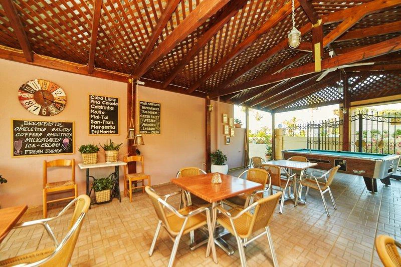 Je zde úschovna zavazadel a hotelový sejf. Ve společných prostorách se mohou hosté přes WiFi připojit k internetu (zdarma). Na rezervační přepážce vám rádi pomůžeme s výběrem a rezervací výletů Nachází se zde restaurace, kavárna a bar. Je tady také hezká zahrada. Je zde TV místnost. Ti, kteří přijeli vlastním autem, mají k dispozici parkovací místa (zdarma). Apartmánový hotel nabízí autopůjčovnu, lékařskou službu, transfer-servis, pokojovou službu a prádelnu. Je možné si půjčit kolo v půjčovně a projet se po okolí.