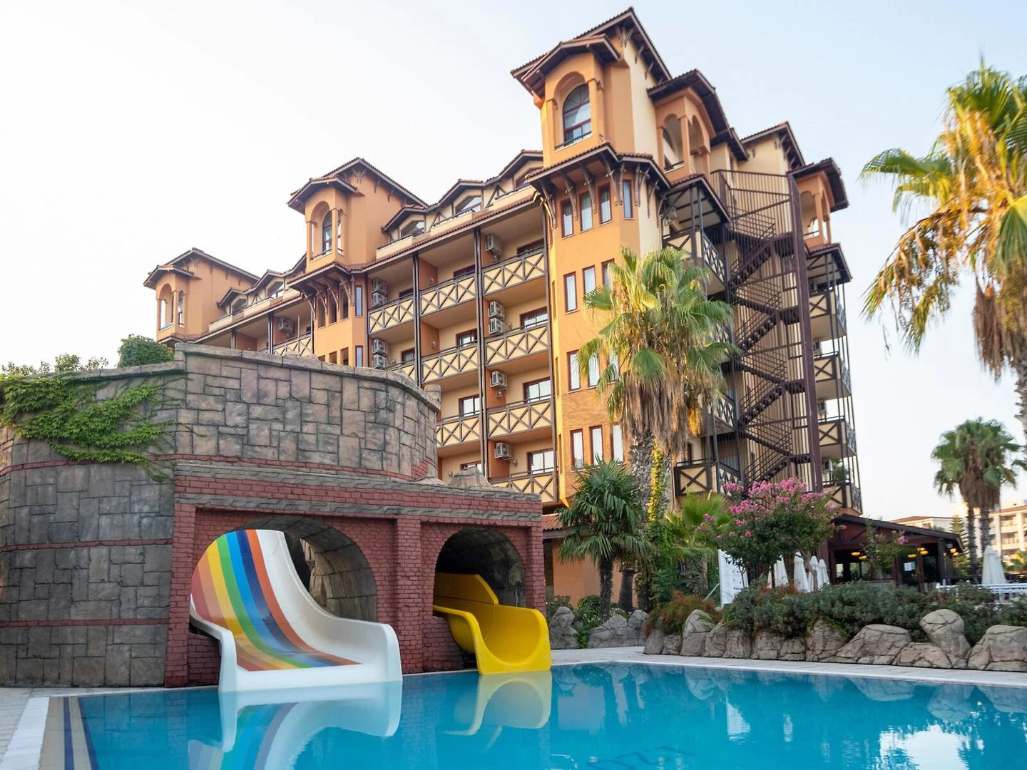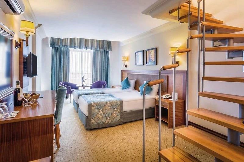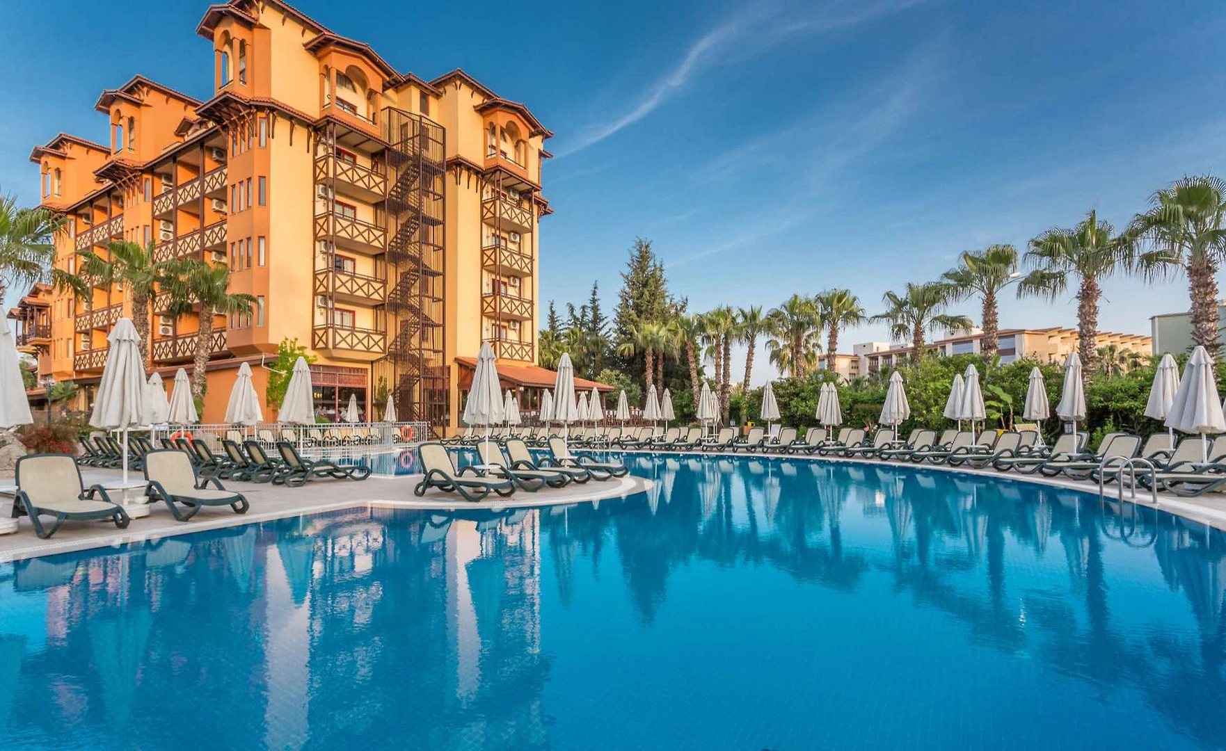 Hotel pochází z roku 1995. Klimatizovaný objekt má 151 pokojů. Je zde výtah, kterým lze vyjet do většiny poschodí. Je zde úschovna zavazadel a hotelový sejf. Ve společných prostorách je možnost internetového připojení přes WiFi. Na rezervační přepážce vám rádi pomůžeme s výběrem a rezervací výletů Nachází se zde restaurace, kavárna, bar a plážový bar. Je tady supermarket a další obchody. V areálu je hezká zahrada a hřiště. Nachází se zde také novinový stánek, TV místnost, dětská herna a knihovna. Hosté mohou zaparkovat v garáži nebo na parkovišti. Dále je možné využít službu hlídání dětí, lékařskou službu, transfer-servis, prádelnu a kadeřnictví. Hosté mohou využít shuttleservis. Aktivní hosté, kteří se chtějí projet po okolí na kole, si mohou půjčit kolo.