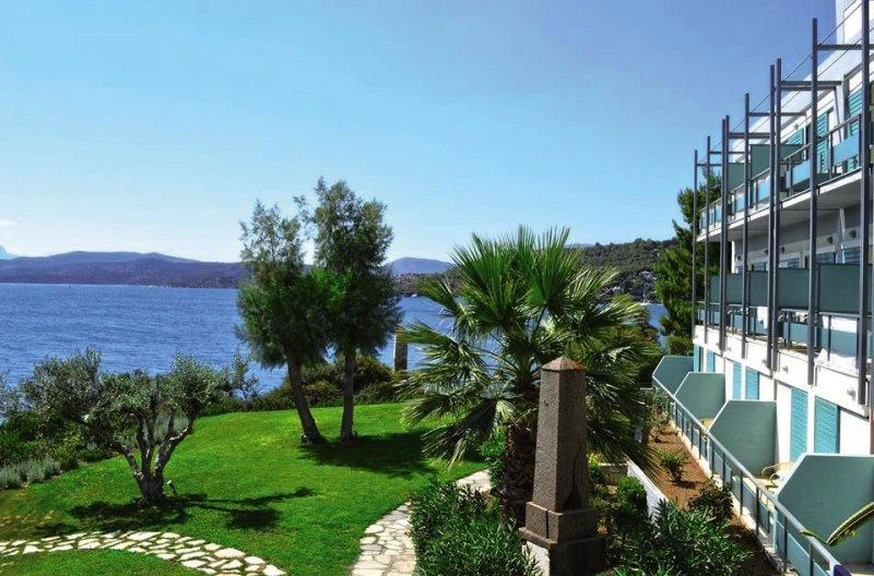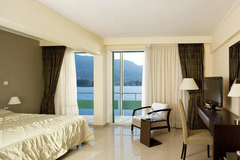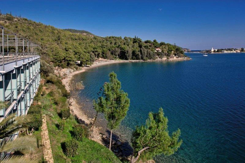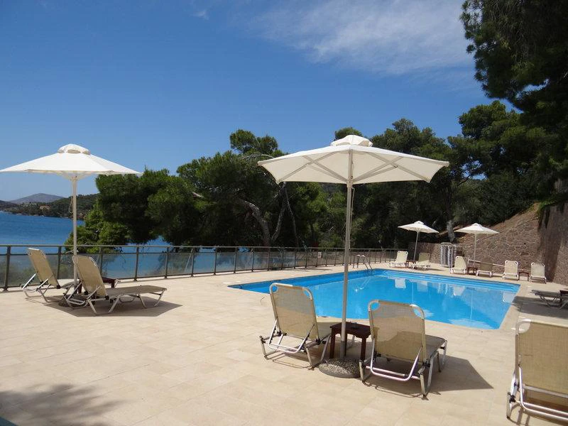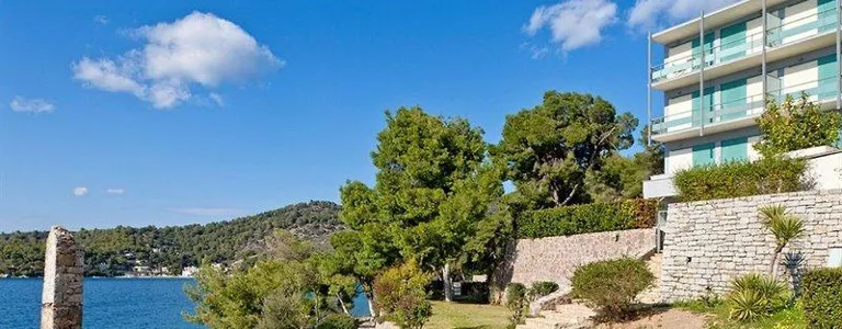 Tento vkusně zařízený hotel je plný přirozeného světla a má bar restaurace s verandou nabízí vynikající výhled. Postaven v roce 1963 slavný řecký architekt, je to považováno za mezník ostrova. Obklopen krásnou zahradou a křišťálově čisté vody, hotel nabízí širokou škálu zařízení, jako je například lobby s 24-hodinová recepce a check-out servis, výtah přístup, TV místnost a plně vybavená konferenční místnost pro jakékoli druh akce. Další vybavení, které je Beach Hotel nabízí také pokojová služba, lékařská péče (s příplatkem), úschovnu kol a kol, a bezplatné parkovací prostor. K dispozici je také hotelový trezor na cennosti, a hosté mohou využít prádelnu (za poplatek) a bezdrátové připojení na internet. Existuje 80 pokoje celkem.